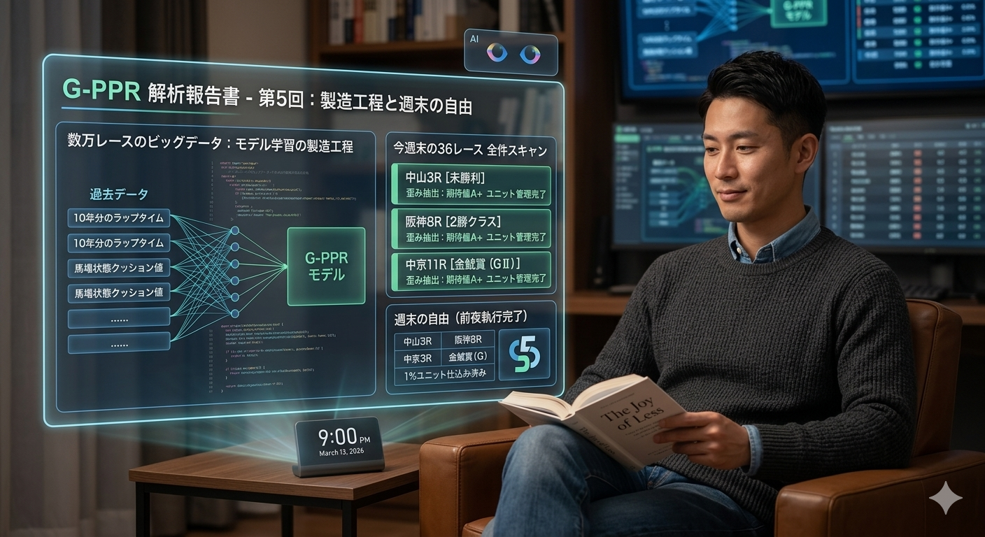 - 作業としての投資: 昨夜語った「18%の呪縛(感情的な負債)」を断ち切るために、馬券購入は「的中を願う儀式」ではなく、期待値を積み上げる「淡々とした作業」でなければならない。